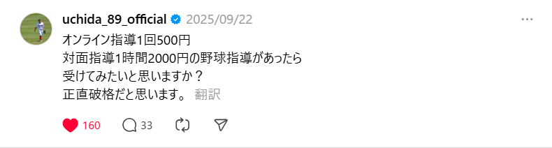 投げ方に関しては「どう教えたらいいかわからない…」とのことで行ったけど、打撃に関しては昔から「バッティングのお手本みたいなスイング」と言われてることもあるみたいなので、打撃のレッスンは検討したこともなかったんです。